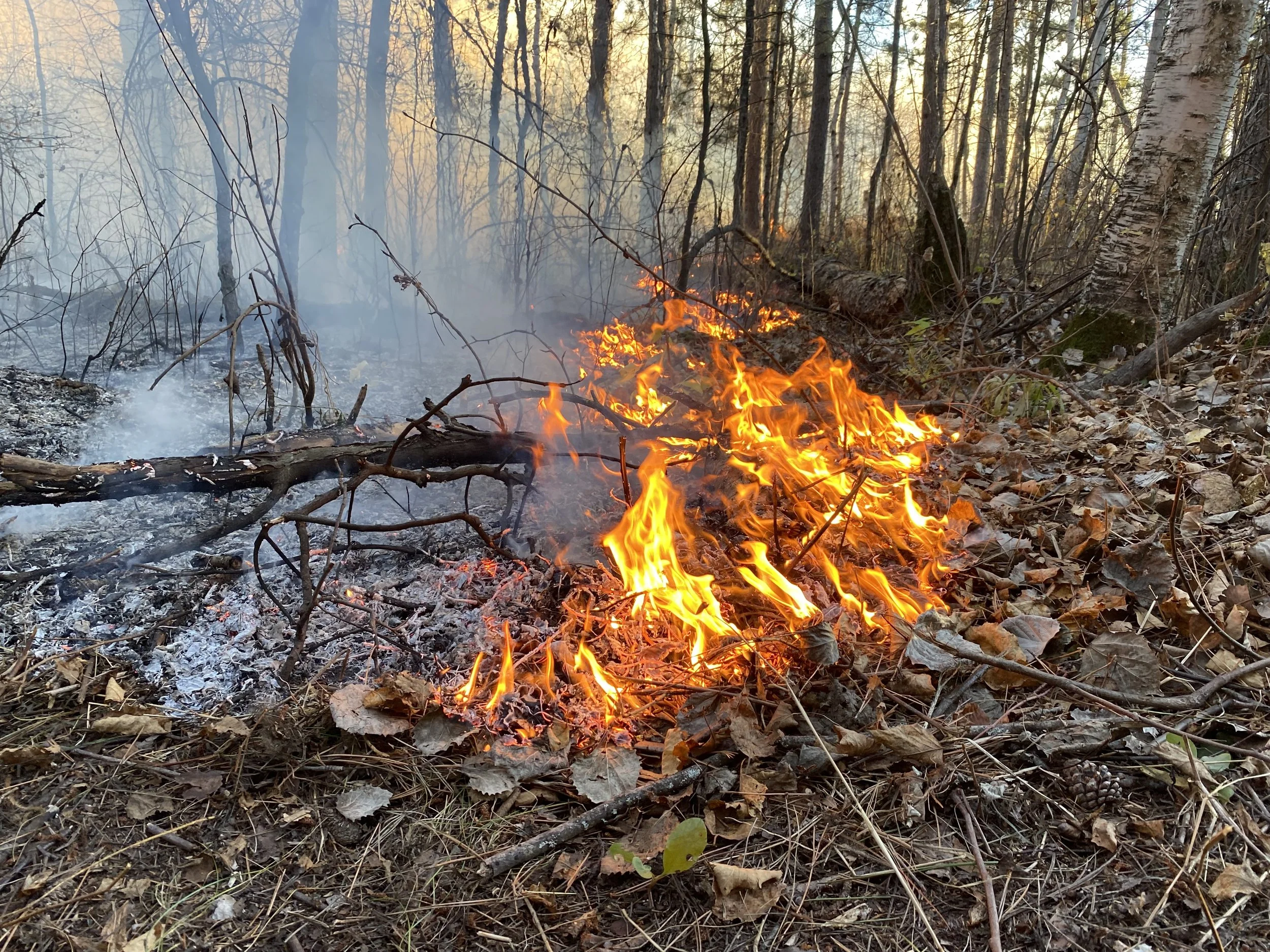 “The Anishinaabe used fire to manage their environments since the Anishinaabe first came to this world. The spirit of fire is the oldest spirit on the Earth,” said Northrup at the Lake Superior Reserve’s River Talk event in February 2025 during the planning process for the project. Fire is an integral part of caretaking for Ojibwe people and many other Indigenous peoples across the continent for thousands of years. When Ojibwe people occupied Wisconsin Point, they used fire for many reasons, including to promote the growth of blueberries and using the resin from the red pine to seal birch bark canoes. When Ojibwe people were forced from Wisconsin Point, the fires ceased and the forest has been in decline. With the reintroduction of fire to Wisconsin Point, the land can begin its recovery and both land and people can heal.